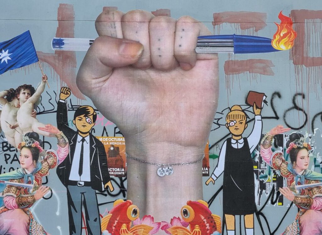 “Ángeles”, pintura clásica e íconos sociales se unen en su trabajo para hablar de una crítica política y de la sociedad de consumo en que habitamos. La activación del espacio por medio de la técnica del Paste up complementan el carácter efímero de sus intervenciones, generando transformaciones estéticas, como también, del paso del tiempo y la censura.