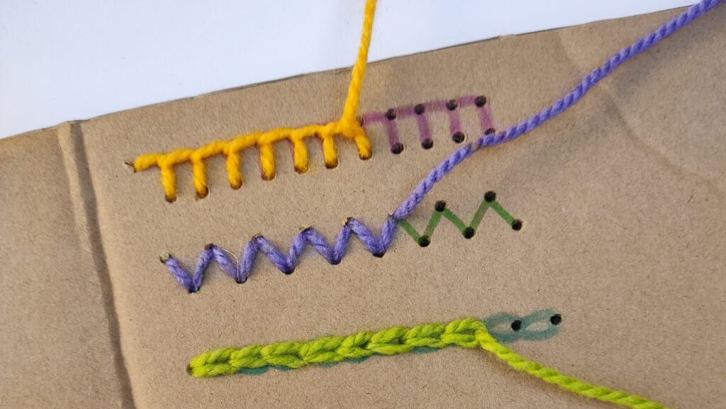 Esta instancia está pensada para ejercitar la concentración y motricidad de niñas, niños y adultos que quieran seguir aprendiendo nuevas puntadas para aplicarlas a sus trabajos. También revisaremos diferentes ejemplos de cómo estas puntadas son utilizadas en piezas tradicionales del arte textil latinoamericano.