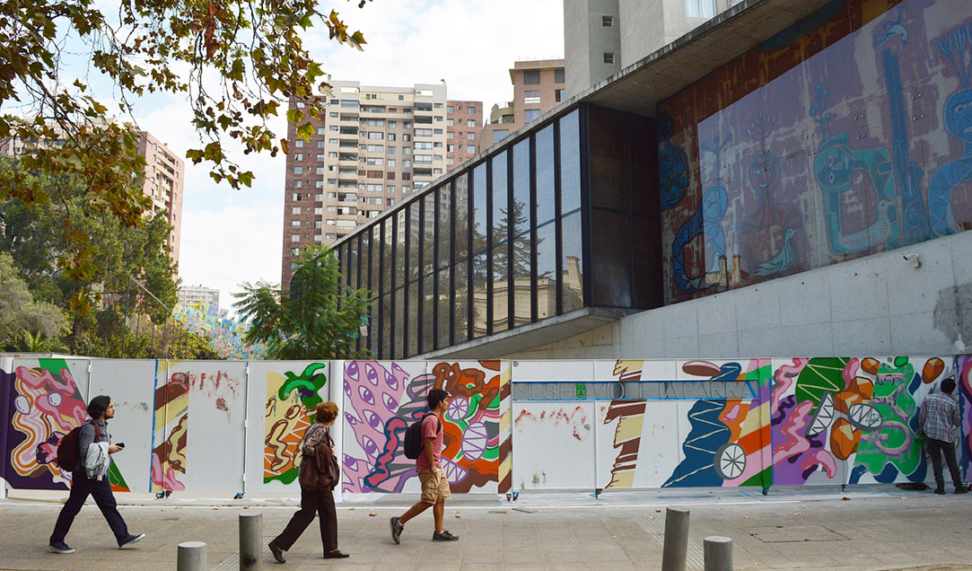 Basco Vazko realiza mural en el frontis del Museo Violeta Parra