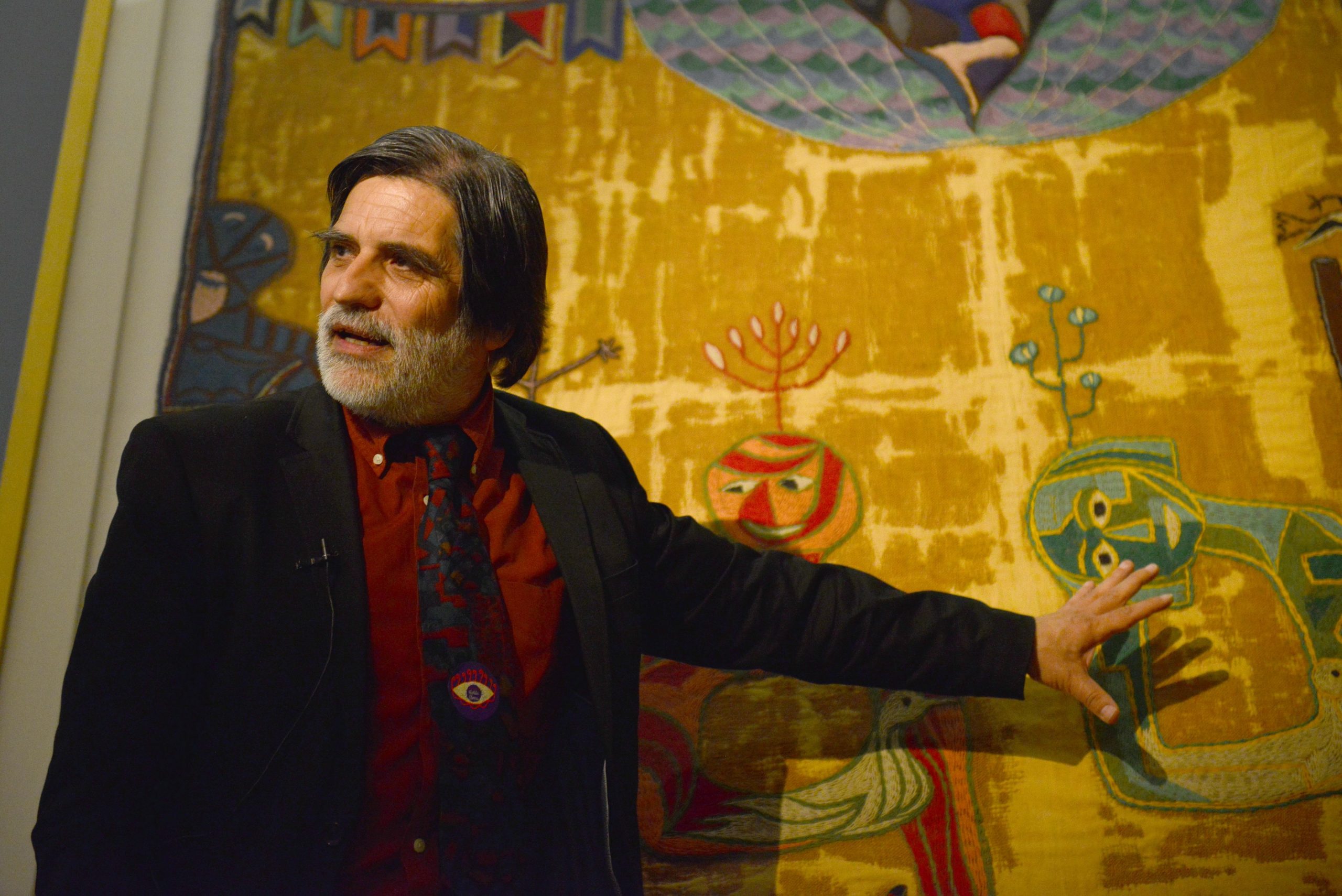 Jorge Montealegre realizó lectura de arpillera «Contra la guerra» en Museo Violeta Parra