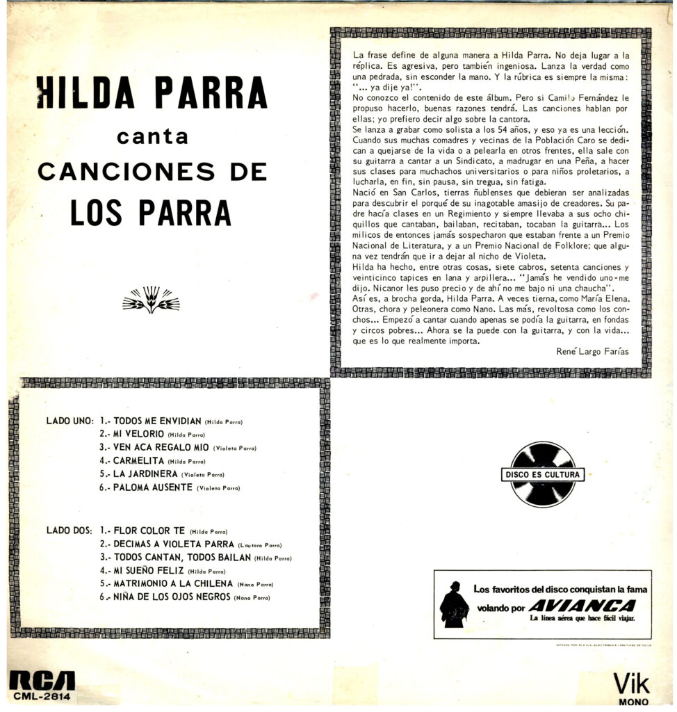 Hilda Parra canta canciones de los Parra