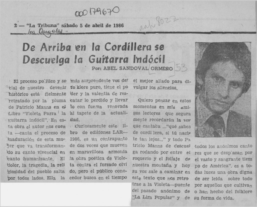 “De arriba en la cordillera se descuelga la guitarra indócil”
