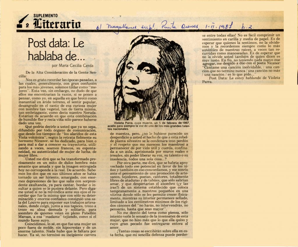 Editor: Diario El Magallanes, p.2 (Suplemento Literario)