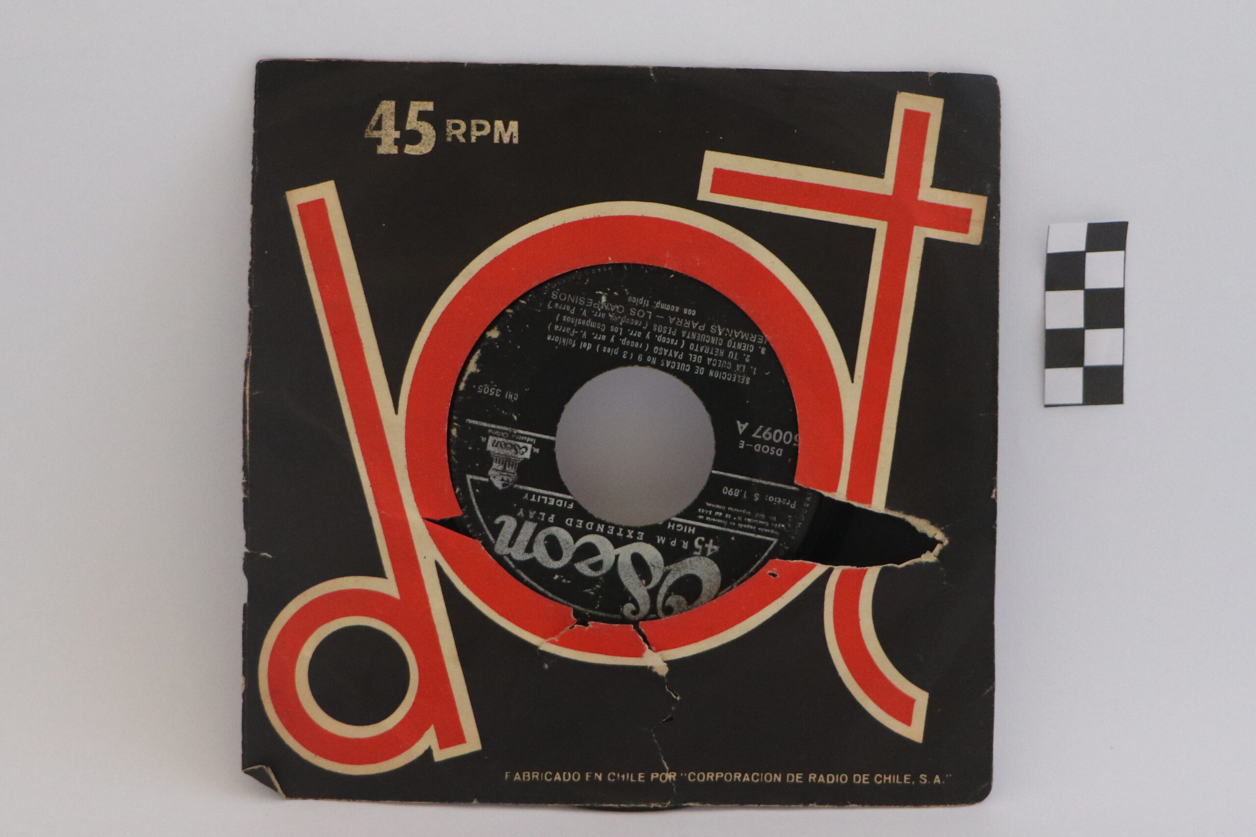 Disco de Vinilo de 45 RPM. Se encuentra al interior de una carátula cuadrada de cartón impreso. Por anverso y reverso el mismo diseño tipográfico con una d, una o y una t en letras rojas y blancas. Arriba a la izquierda se observa la indicación 45 RPM y abajo a las derecha el texto: Fabricado en Chile por "Corporación de Radio de Chile, S.A." El álbum contiene los temas: 1. La cueca del payaso, 2. Tu retrato, 3. Ciento cincuenta pesos, 4. Las cuatro esquinas, 5. El sastre y el zapatero, 6. Cantemos querido amigo.