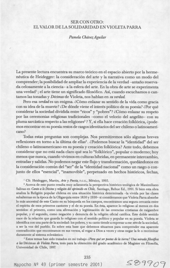 “Ser con otro, el valor de la solidaridad en Violeta Parra”.