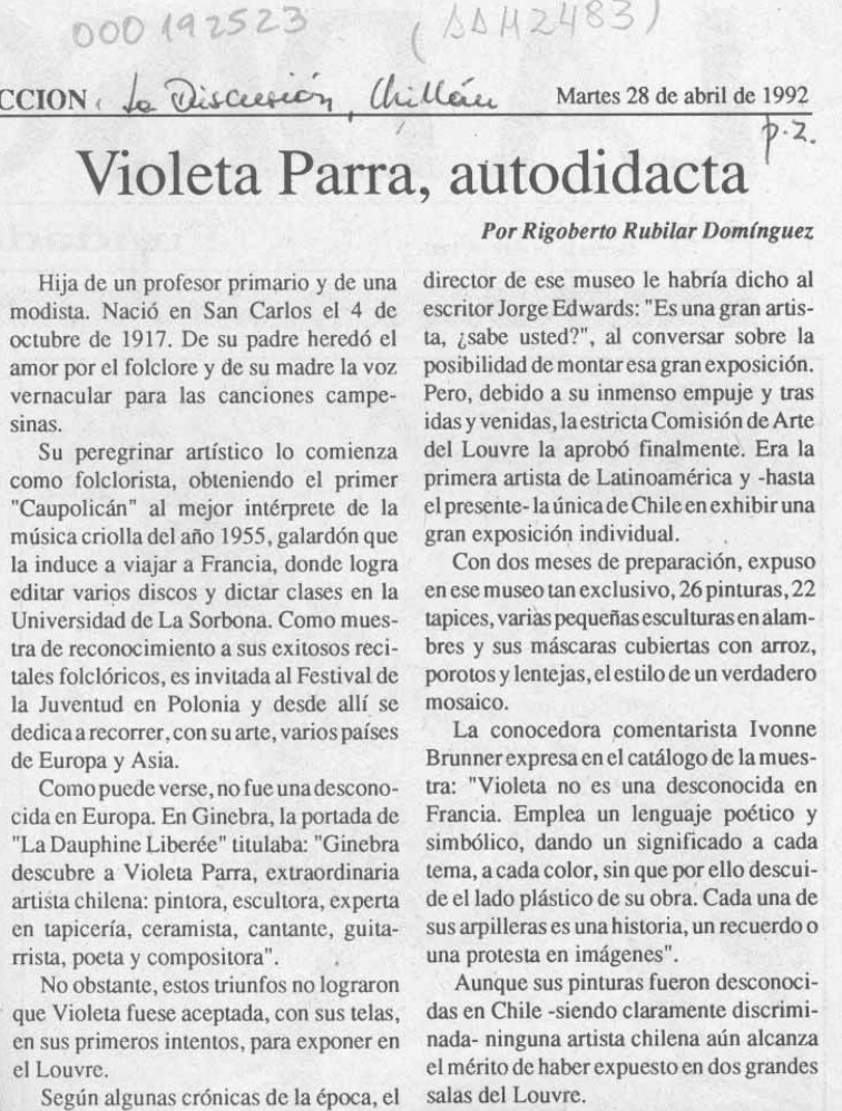 “Violeta Parra, autodidacta”