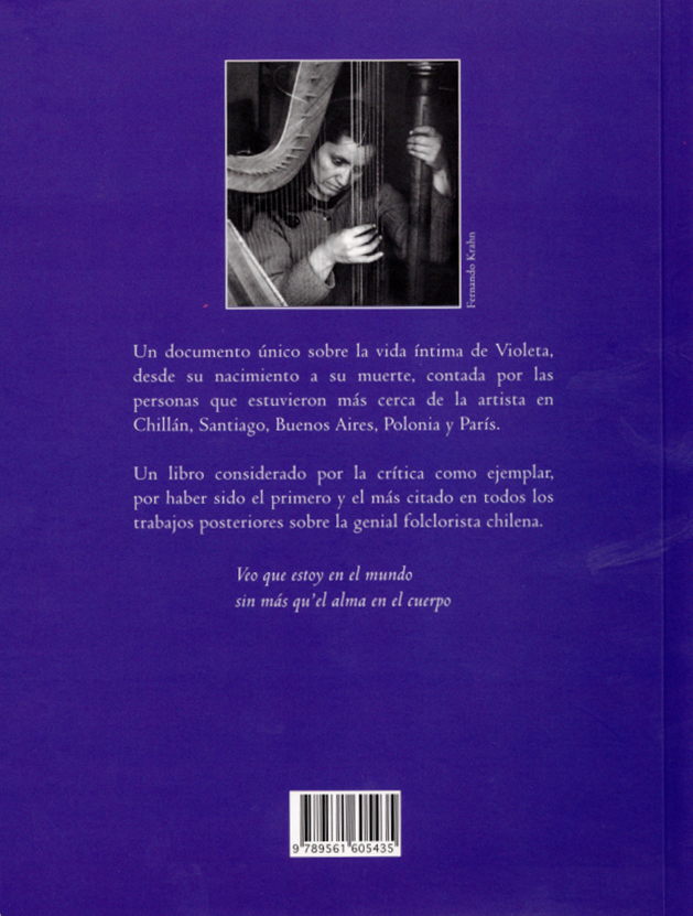 Investigación periodística realizada por las autoras entre 1971 y 1972, producto de un seminario sobre Literatura y Testimonio en la Universidad de Chile. Mediante numerosas “entrevistas en profundidad realizadas a personas que habían estado muy cerca” de Violeta Parra, el libro recrea la trayectoria de la artista en capítulos dedicados a “La infancia en el sur de Chile”, su labor como “cantora en la capital”, “artista chilena en Europa”; finalmente, sus últimas composiciones y la experiencia de la carpa de La Reina. La obra contiene breves fichas de sus 26 “Informantes”, un “Glosario” e “Hitos biográficos”