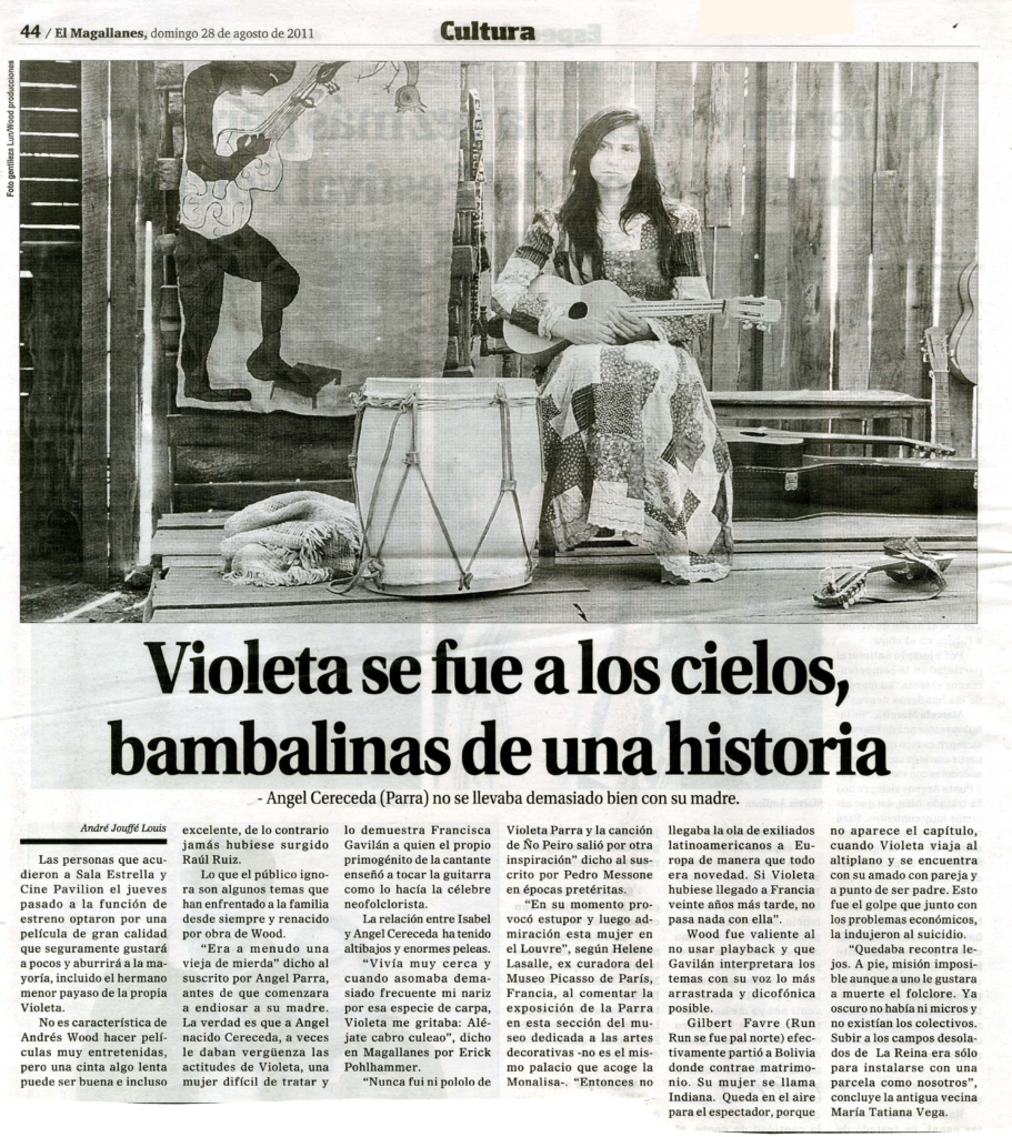 Nota que narra algunos hechos de la vida de Violeta Parra que, según el autor, habrían quedado tras bambalinas en la película de Andrés Wood “Violeta se fue a los cielos”.