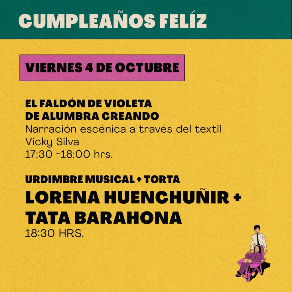En conmemoración del cumpleaños de la artista chilena Violeta Parra, el Centro de Extensión (Centex) en conjunto con el Museo Violeta Parra, tienen el placer de anunciar una serie de actividades culturales diseñadas para honrar el legado de Violeta Parra. Las actividades se llevarán a cabo los días 3 y 4 de octubre en el Hall Central de CENTEX.