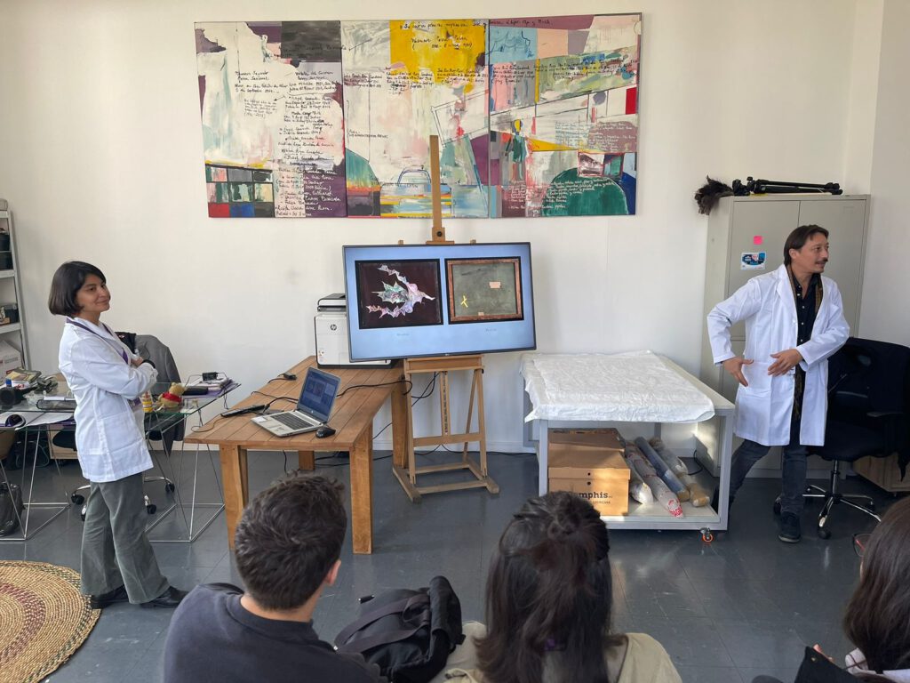 “En esta charla, junto al conservador Pablo Marfán, dimos a conocer una obra inédita de Violeta Parra, la cual está en un proyecto de restauración para restituir sus valores materiales y estéticos, por lo que Pablo hizo una breve reseña sobre la disciplina de la conservación y la restauración.”, dijo la Jefa de Colecciones y Patrimonio del museo, María José Delpiano.