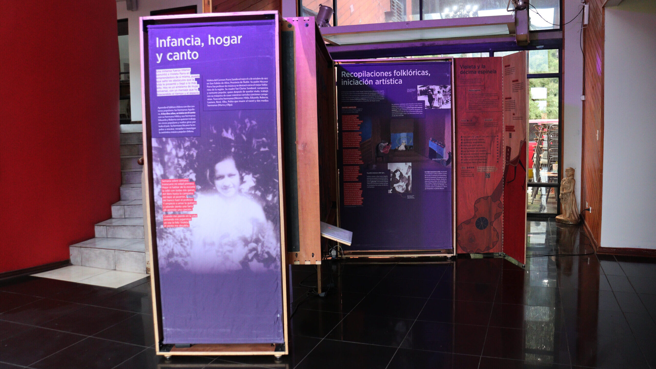 La exposición, que difunde la vida y obra de Violeta Parra, se acaba de inaugurar en el hall de la Corporación Cultural de San Pedro de la Paz, presentada por su Director, Jaime Soto Figueroa, que fue acompañado por una presentación musical.