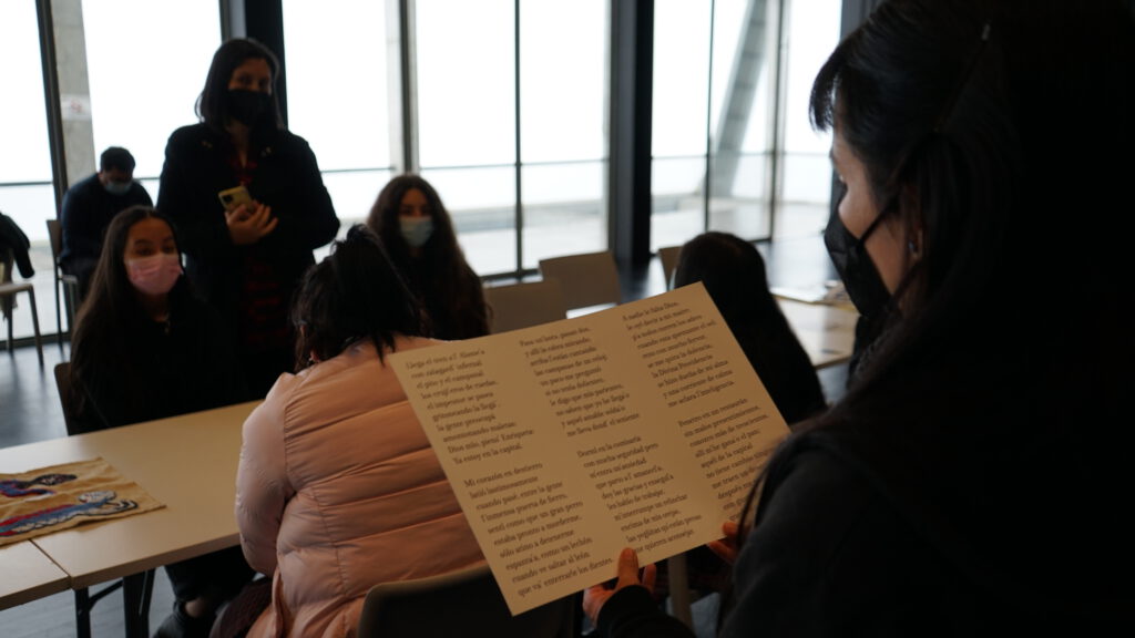 En esta misma línea, la mediadora cultural del Museo Violeta Parra, Viviana Vergara, comentó que “si bien siempre trabajamos esta actividad desde el bordado, esta vez la enfocamos a la escritura en décimas para que las estudiantes fueran vinculándose con ese lado, ya que ellas hacían sus escritos. Una escribía canciones, otra escribía sus propios poemas, y desde ahí hubo una conexión en la actividad.” Agrega, además, que “fue una experiencia super linda, especialmente considerando que fue en medio del temporal que hubo en la zona. Las chicas que asistieron fueron contra viento y marea”.