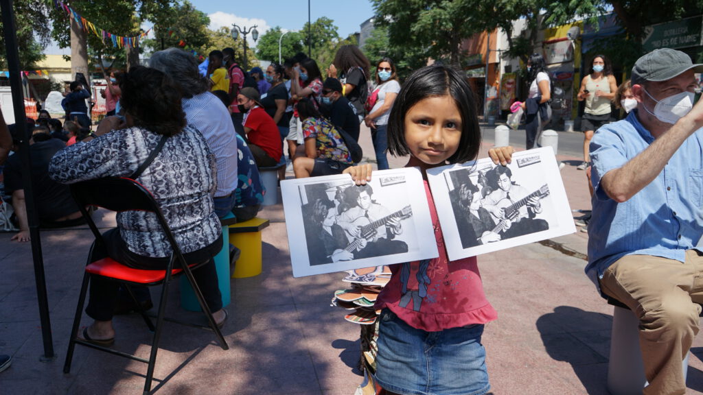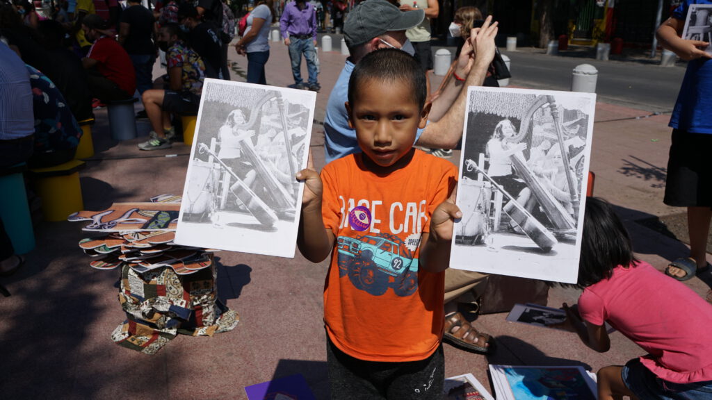 La fiesta comenzó alrededor de las 15:00 horas con música y actividades como “La Maleta de Violeta”, un museo portátil donde se le enseña a niños y niñas la vida y obra de Violeta Parra de manera didáctica.
