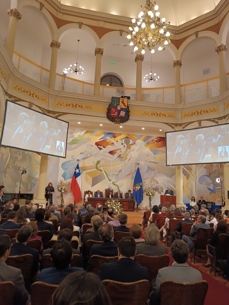 La actividad se efectuó en la Casa Central de la Universidad de Chile, donde asistieron las autoridades más importantes de la institución, como la Rectora Rosa Devés, la prorrectora, Alejandra Mizal, la vicerrectora de Extensión y Comunicaciones, Pilar Barba, y el Ministro de Hacienda Mario Marcel, entre muchos otros invitados.