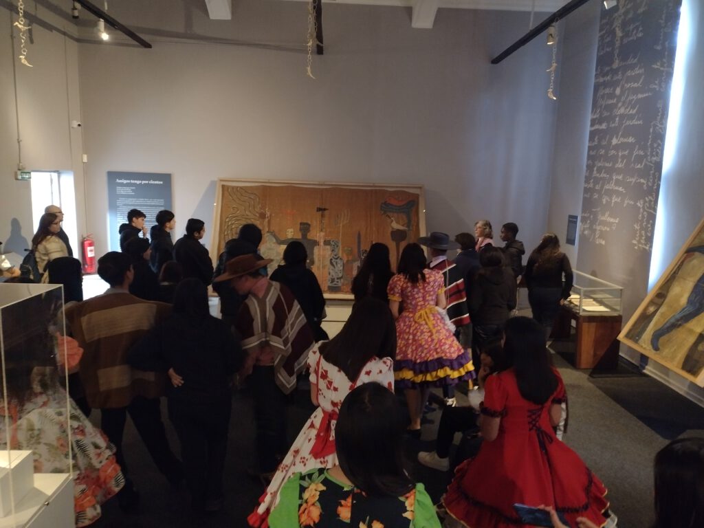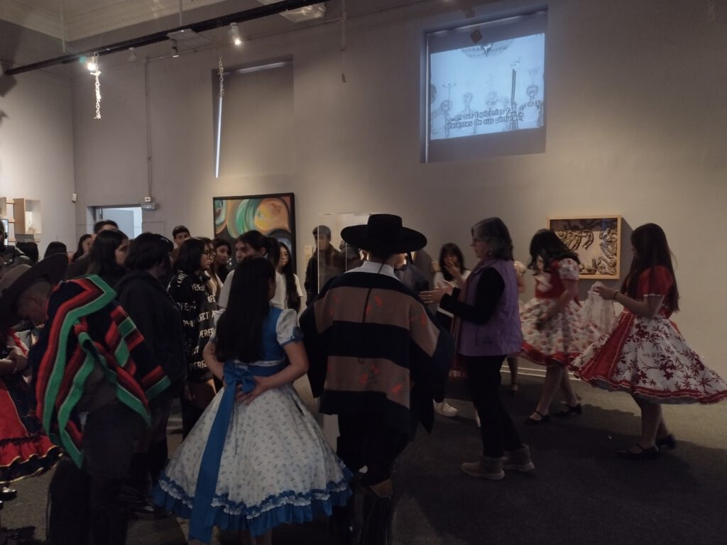 Al finalizar esta visita, los y las estudiantes, junto a su profesor, Diego Cuituño, tenían preparada una grata sorpresa: un homenaje a Violeta Parra en forma de un esquinazo de cueca en el frontis del Museo de Arte Contemporáneo (MAC), sede Quinta Normal.
