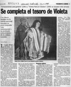 “Tributo a Violeta Parra reúne a músicos chilenos”.