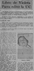 “Libro de Violeta Parra editó la UC”.