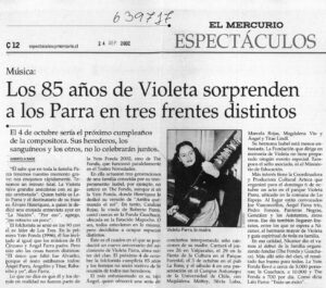 “Los 85 años de Violeta sorprenden a los Parra en tres frentes distintos”.