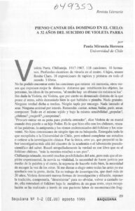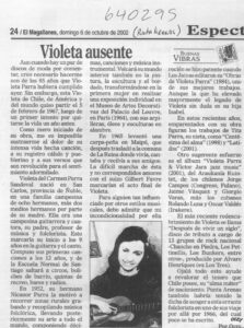 “Pienso cantar día domingo en el cielo, a 32 años del suicidio de Violeta Parra”.