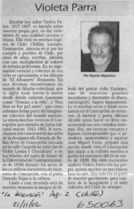 “Homenajean a Violeta Parra en Estados Unidos”.