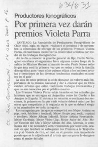 “Por primera vez darán premios Violeta Parra”.