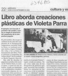 “Libro aborda creaciones plásticas de Violeta Parra”.
