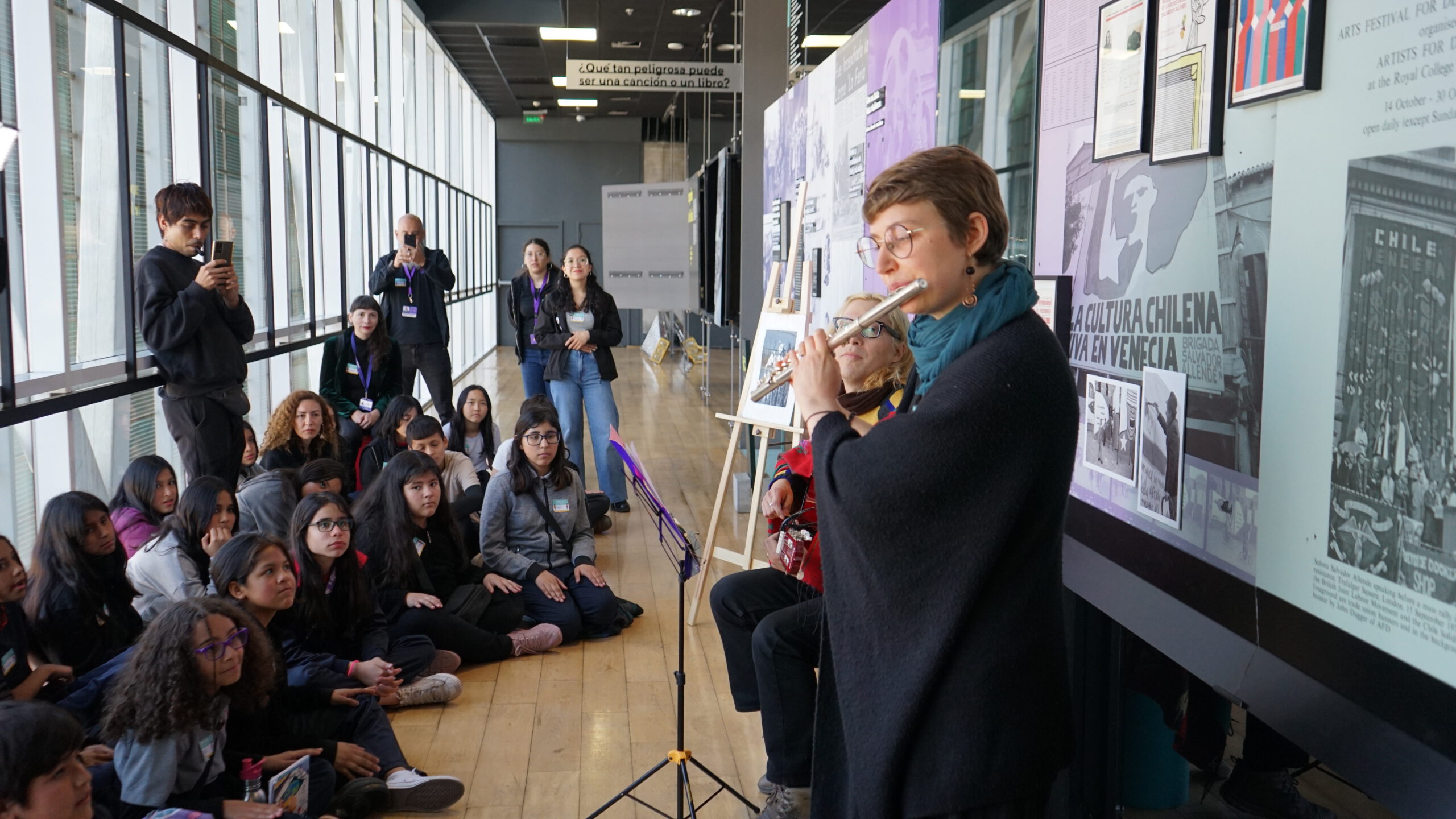 Durante la mañana se realizó la visita mediada “Con Violeta reconozco mis derechos”, que comenzó a las 11:00 de la mañana en el Museo de la Memoria y los Derechos Humanos, junto a las y los estudiantes de sexto básico de la Escuela Básica de la República de Panamá de Santiago. La visita fue organizada por la institución anfitriona, el Museo Violeta Parra y la Dirección de Educación de la Municipalidad de Santiago (DEM). La mediación relató a través de la música, juegos y un pequeño taller de banderines, la relación de Violeta Parra con la denuncia social desde el arte, el reconocimiento de los derechos humanos, y el legado de la artista a través de su hijo, Ángel Parra, quien denunció los crímenes de la dictadura chilena.