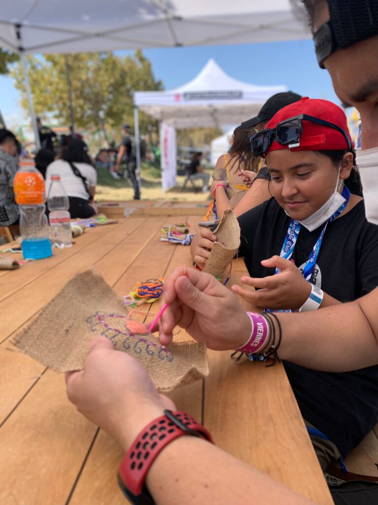 El primer taller que se realizó fue el “Arpillerazo los ojos de Violeta”, donde los y las participantes bordaron su propio ojo inspirado en el creado por Violeta Parra como manera de recorrer su legado y reflexionar sobre los diversos acontecimientos actuales.