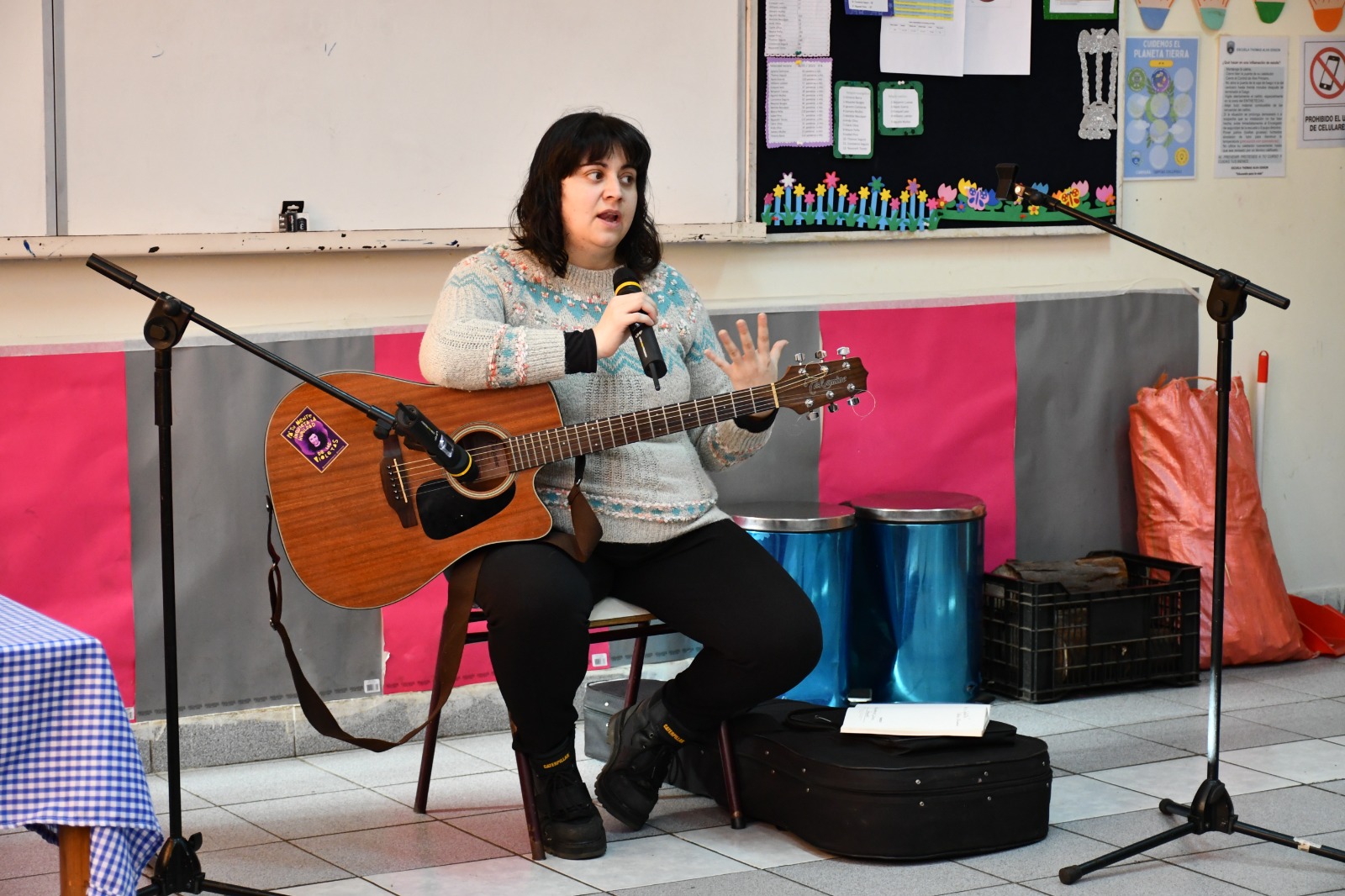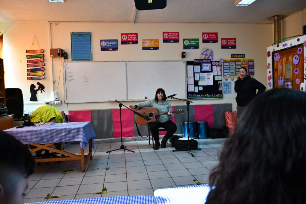 La actividad se hizo para las alumnas y alumnos del taller de música de la Escuela, donde Tamara explicó las bases del folclor chileno, la importancia de la guitarra campesina en la tradición y de las investigaciones realizadas por Violeta Parra, Margot Loyola y Patricia Chavarria sobre la música popular y las tradiciones campestres.