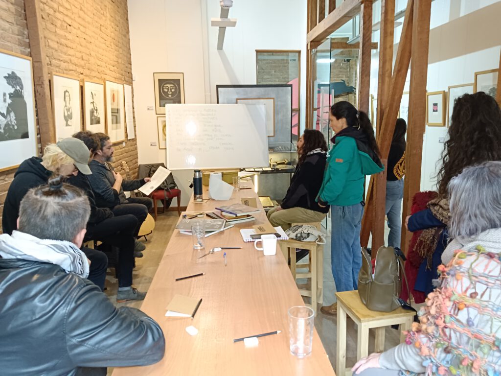 La instancia comenzó con una breve introducción a la décima como forma de poesía popular, para después imprimirlas en forma de Liras populares y que los profesores del taller, Claudio Martínez y Pablo Morales, musicalizaran lo creado por los y las asistentes en un mini concierto.