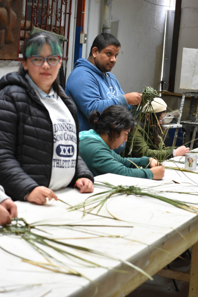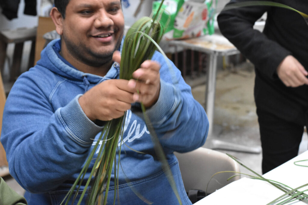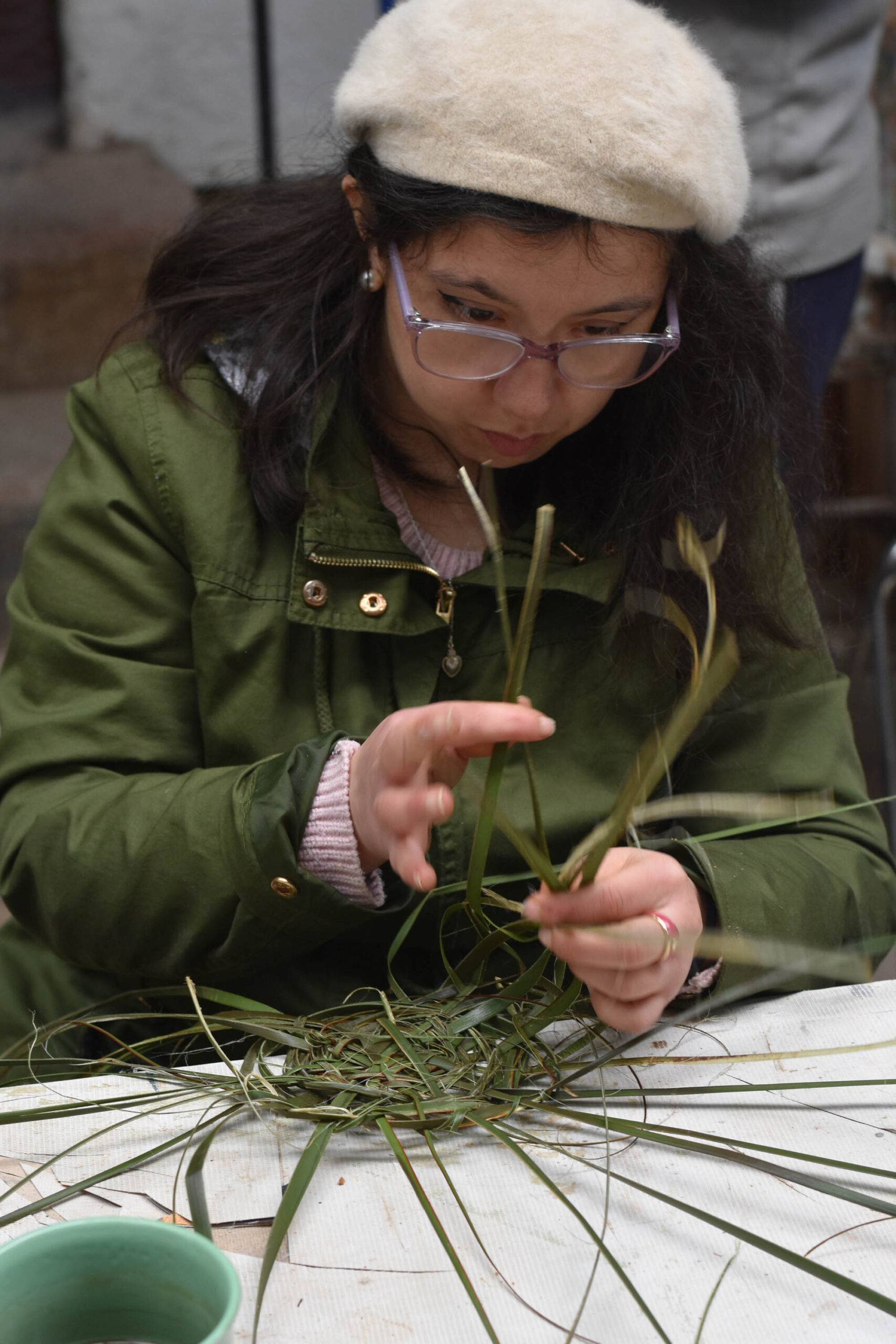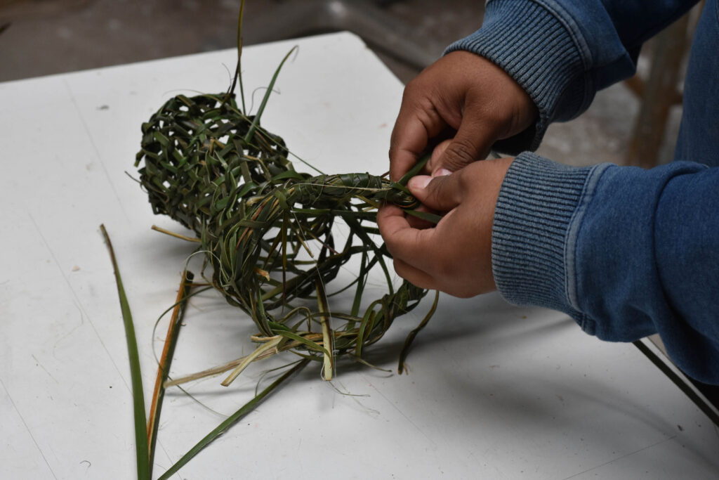 Impartido por el maestro Juan Pablo Bahamonde y una intérprete de lengua de señas chilena, la actividad contó con la participación de 10 personas quienes aprendieron como trenzar la pita, a reconocer donde se puede encontrar este material y como se amoldan las cestas.