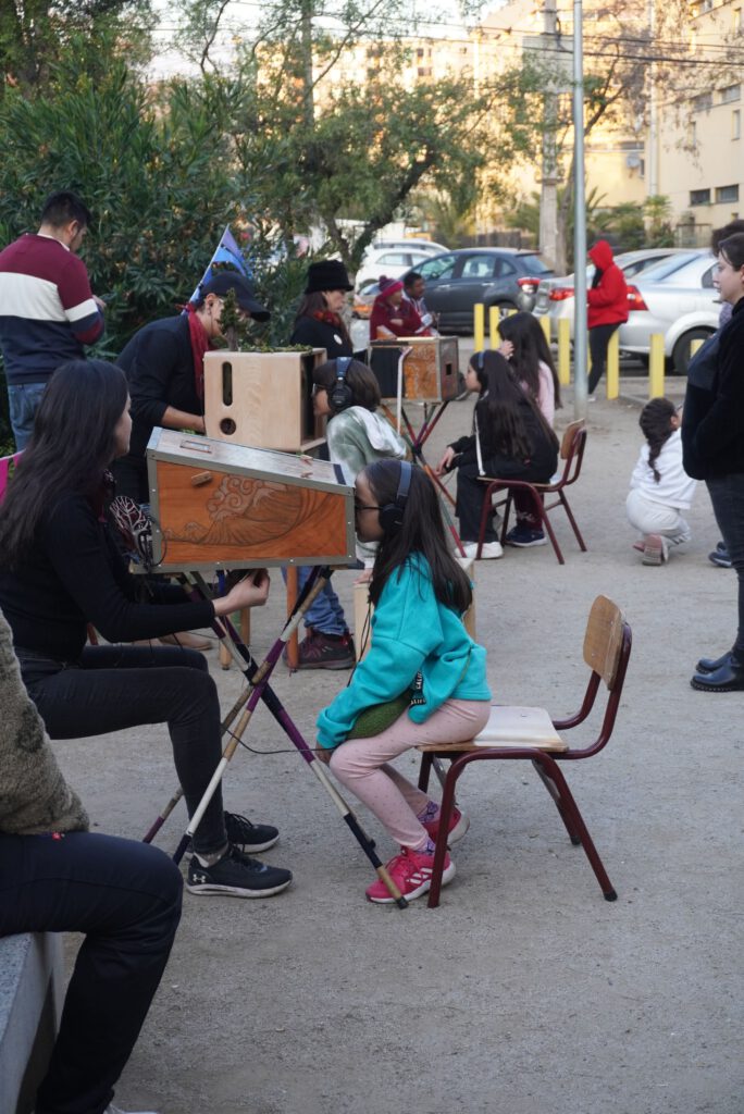 “Violeta, tejido de saberes”, es una trilogía de Teatro La Raíz en formato Lambe Lambe, que narra la infancia de Violeta Parra, su relación con la música y dos historias populares de nuestro territorio que transforman al espectador en un recopilador de historias al igual que Violeta Parra.