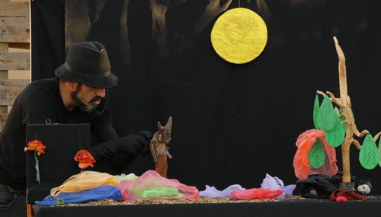 “El Labrador”, es aquel espíritu que yace en nuestro interior, el que nos lleva a mover la tierra, a regar el árbol y a cuidar las flores; es el personaje que guía esta historia, que se suscita en una mesa con títeres.
