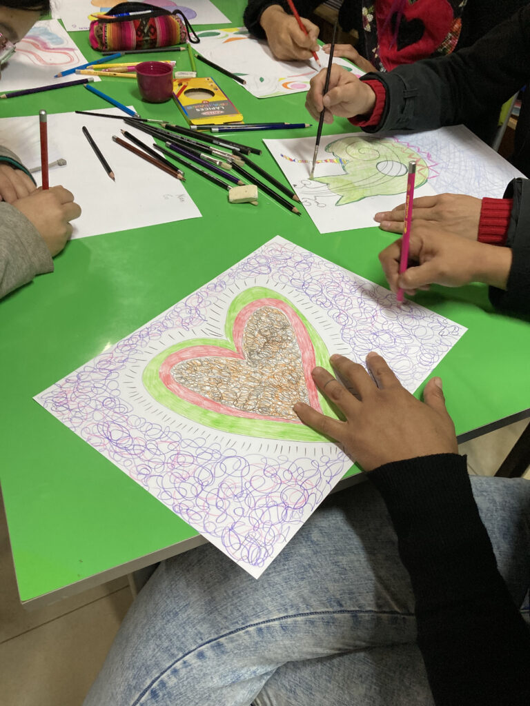 La actividad, que tiene un enfoque en la arteterapia, tuvo a 27 participantes quienes tuvieron una introducción al bordado de arpilleras a través del dibujo, para luego, en las próximas sesiones, comiencen a trabajar en su creación bordada.