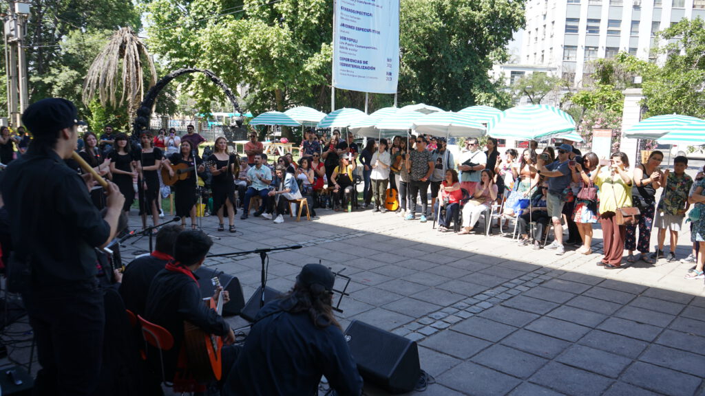 “Para nosotros fue lo mejor, ya que los chicos fueron los que querían postular. Lo hicimos, lo logramos y en realidad, el mejor reconocimiento es que los estudiantes hayan tenido un momento para disfrutar y hacer música, especialmente tocando temas de la Violeta (Parra)”, señaló la profesora guía del Conjunto Folclórico del Instituto Nacional, Edith Araya Green.