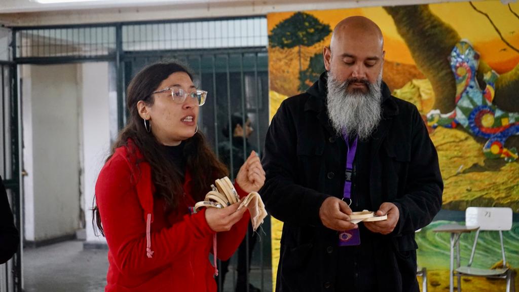 Los días 6 y 13 de septiembre, el equipo del Museo Violeta Parra visitó el Centro Penitenciario Femenino de San Miguel, donde hicieron la actividad mediada “La Maleta de Violeta” y un taller de bordado junto a un grupo de internas.