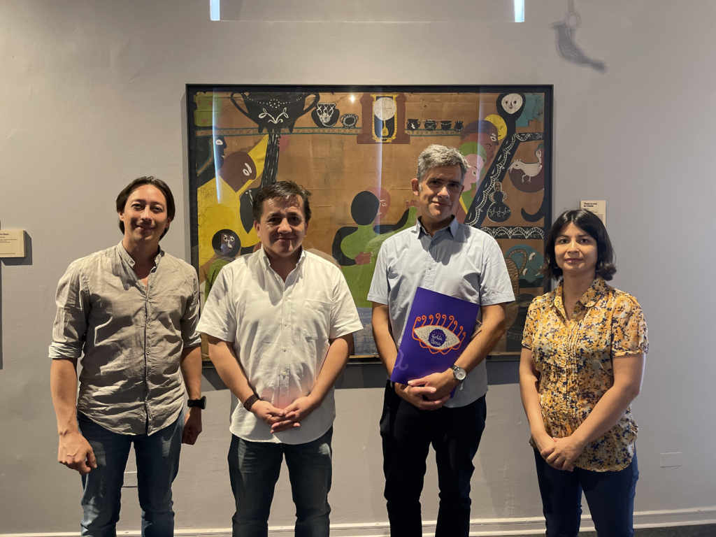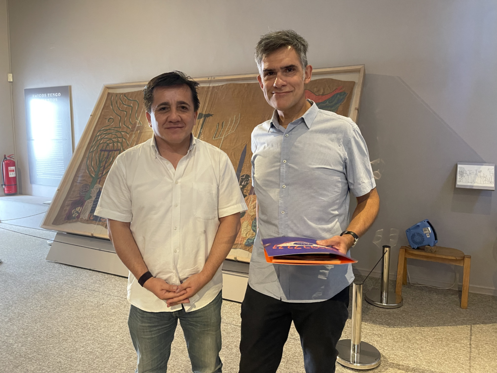 Luego de la entrega de dicho material, Rodrigo visitó la Sala Museo Violeta Parra, donde vio distintas obras, como arpilleras y pinturas, creadas por la artista, y recibió un regalo por parte del equipo de nuestra institución.
