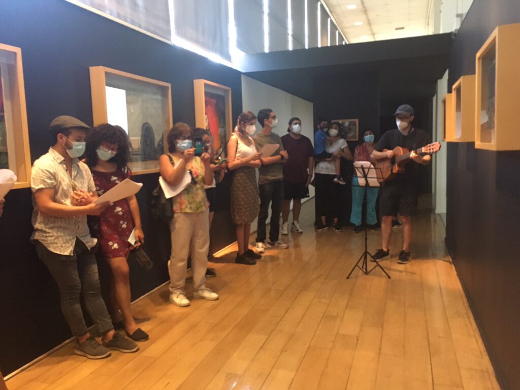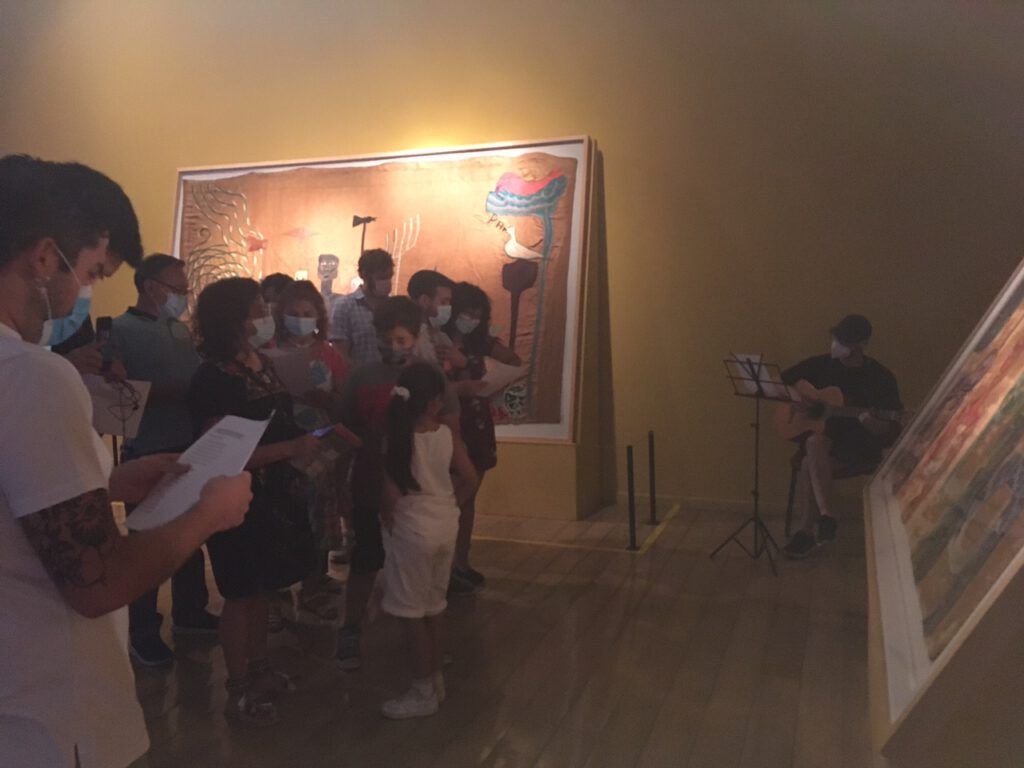 Una de las actividades más recordadas de nuestro museo eran las Visitas Mediadas Musicales, una instancia donde nuestros visitantes hacían un recorrido por la obra visual de Violeta Parra mientras cantaban sus canciones.
