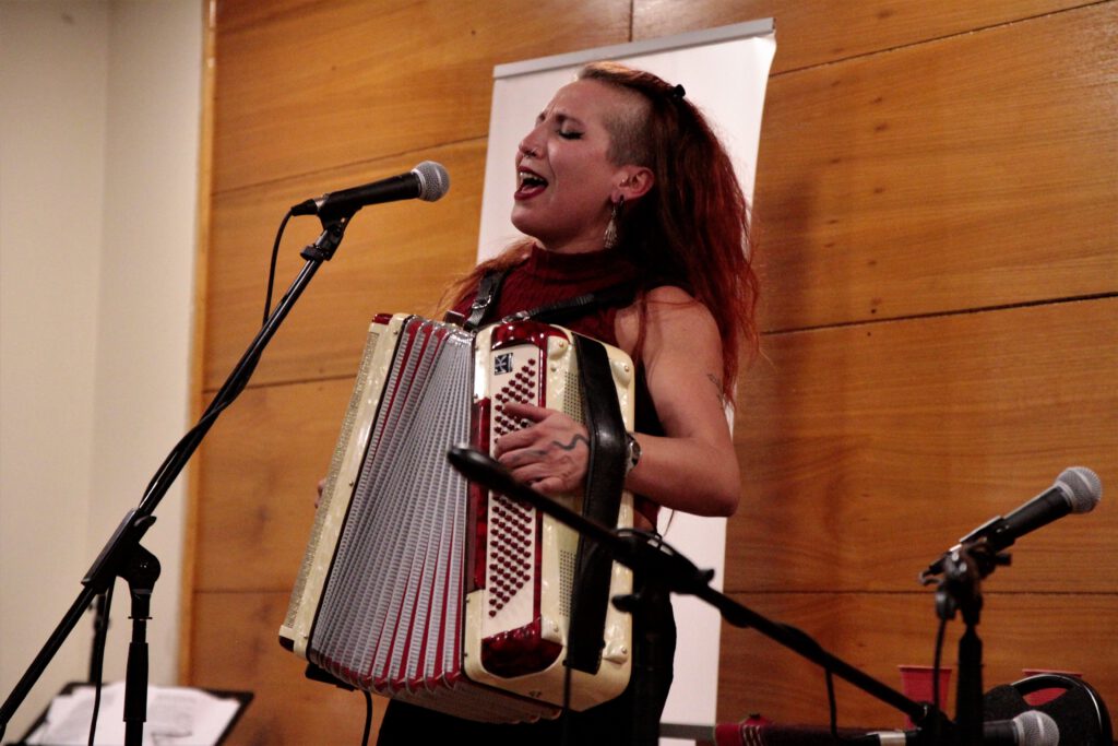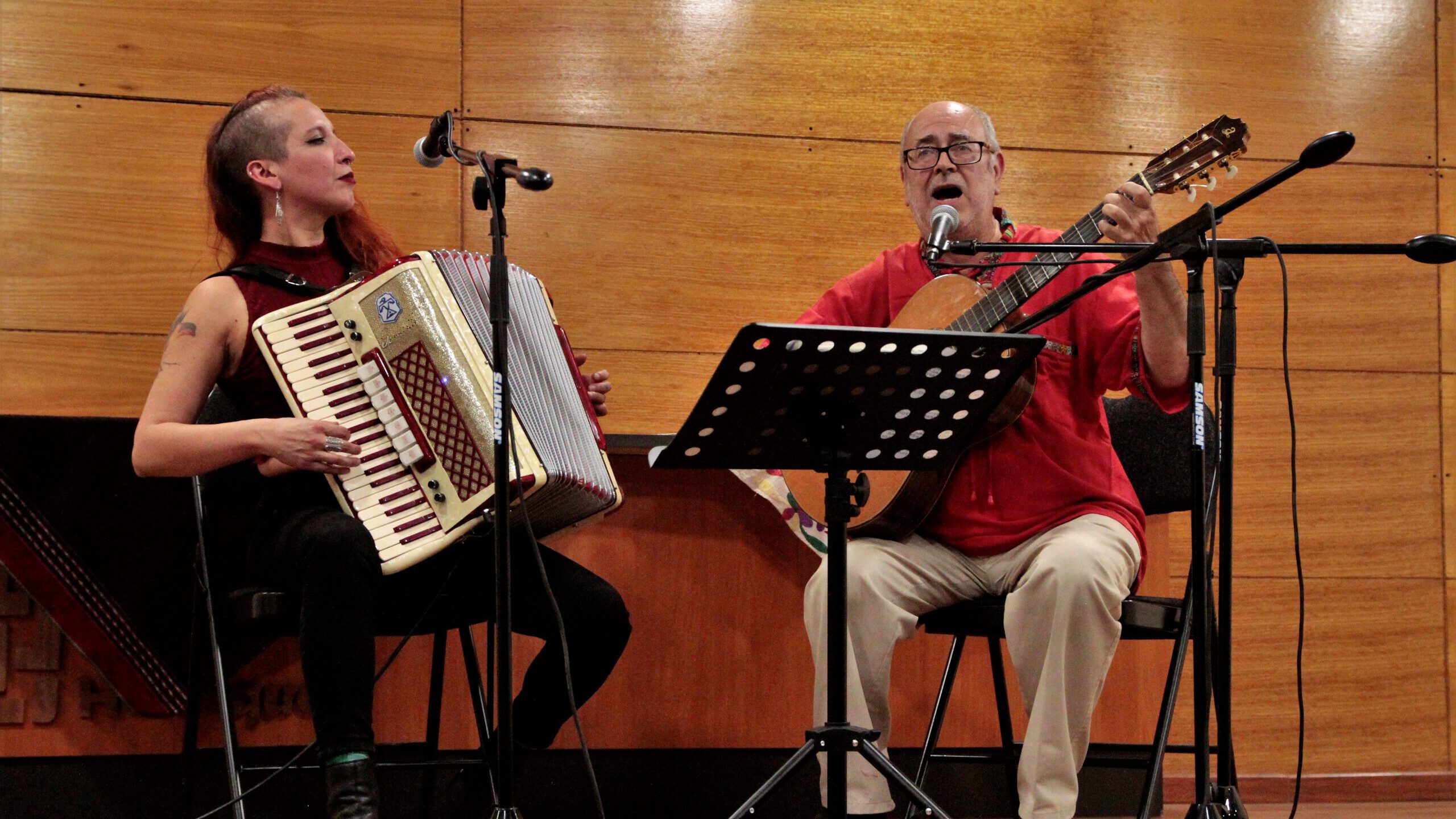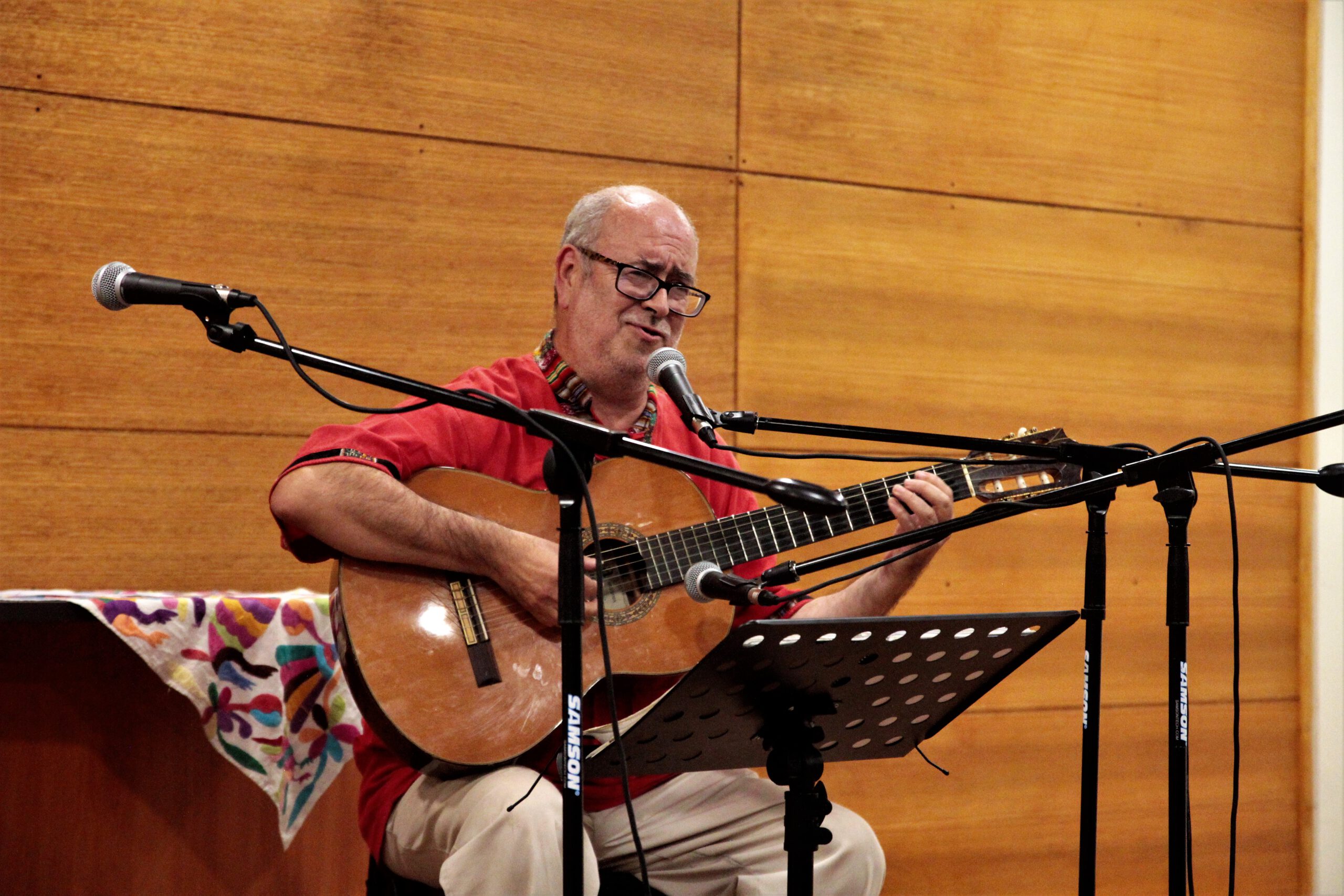 La actividad contó con la participación de Camila Vaccaro, fundadora del conjunto «Merkén», y Eduardo Peralta, reconocido trovador del Canto Nuevo de Chile, quienes presentaron parte de su repertorio y recordaron algunas canciones, en colaboración, de autores como Violeta Parra, Víctor Jara y Rolando Alarcón. Tras interpretar «El diablo en el paraíso» o «Lo único que tengo», entre otras, el público agradeció y manifestó su alegría por medio de fraternos y entusiastas aplausos.