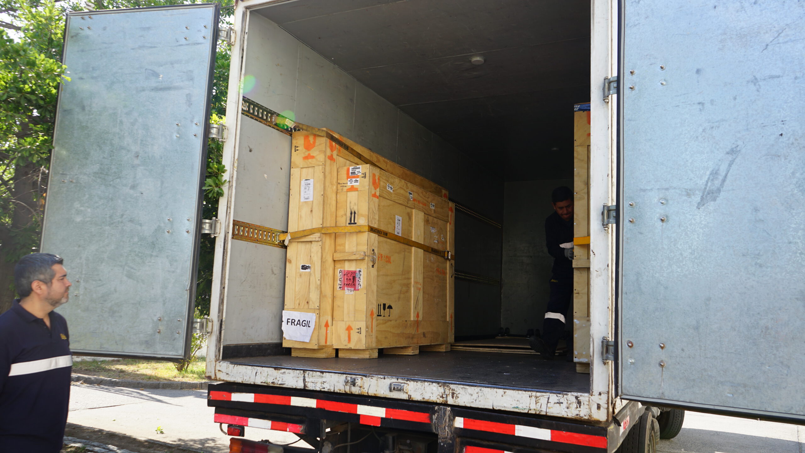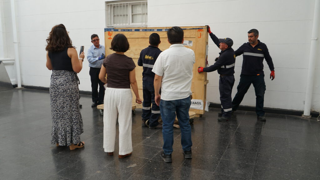 “Esta mañana, luego de diez meses de estar fuera de Chile, han arribado tres importantes arpilleras de Violeta Parra, tras exhibirse en la 59 Bienal de Venecia, proceso que se ha realizado sin ningún tipo de percance, y con las obras en perfecto estado. Esto nos compromete a seguir trabajando en el fortalecimiento de la presencia internacional del museo, que esperamos se traduzca en nuevas actividades que permitan difundir por el mundo el maravilloso legado de Violeta Parra”, dijo el presidente del Directorio y Director (s) del Museo Violeta Parra, Roberto Guerra Veas, quien junto a la Jefa de Colecciones y Patrimonio de la institución, María José Delpiano y el equipo del museo, revisaron el estado de las obras, que permanecieron casi un año en Italia, para ver posibles daños luego de su traslado en avión.