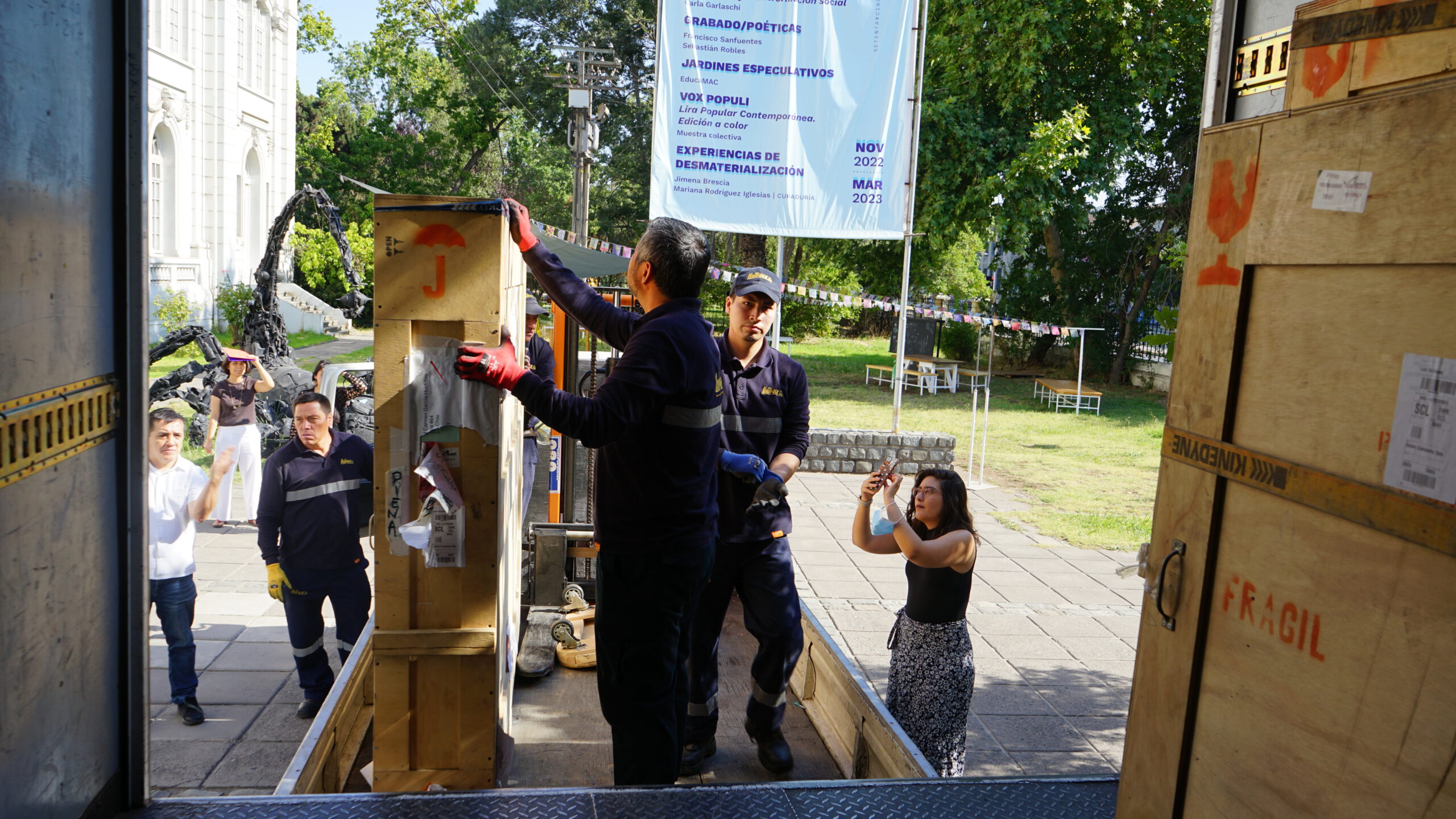 Con eso, el día 24 de enero de 2023, se concretó el traslado de las arpilleras desde Venecia, Italia, hasta el Museo de Arte Contemporáneo (MAC) Quinta Normal, en Santiago de Chile; las obras llegaron en un camión a dicho espacio alrededor de las 10 de la mañana, donde un equipo de 9 personas se encargó de bajar y posicionar «El Circo», «Combate Naval 1» y «El árbol de la vida» nuevamente en el depósito de Matucana 464.