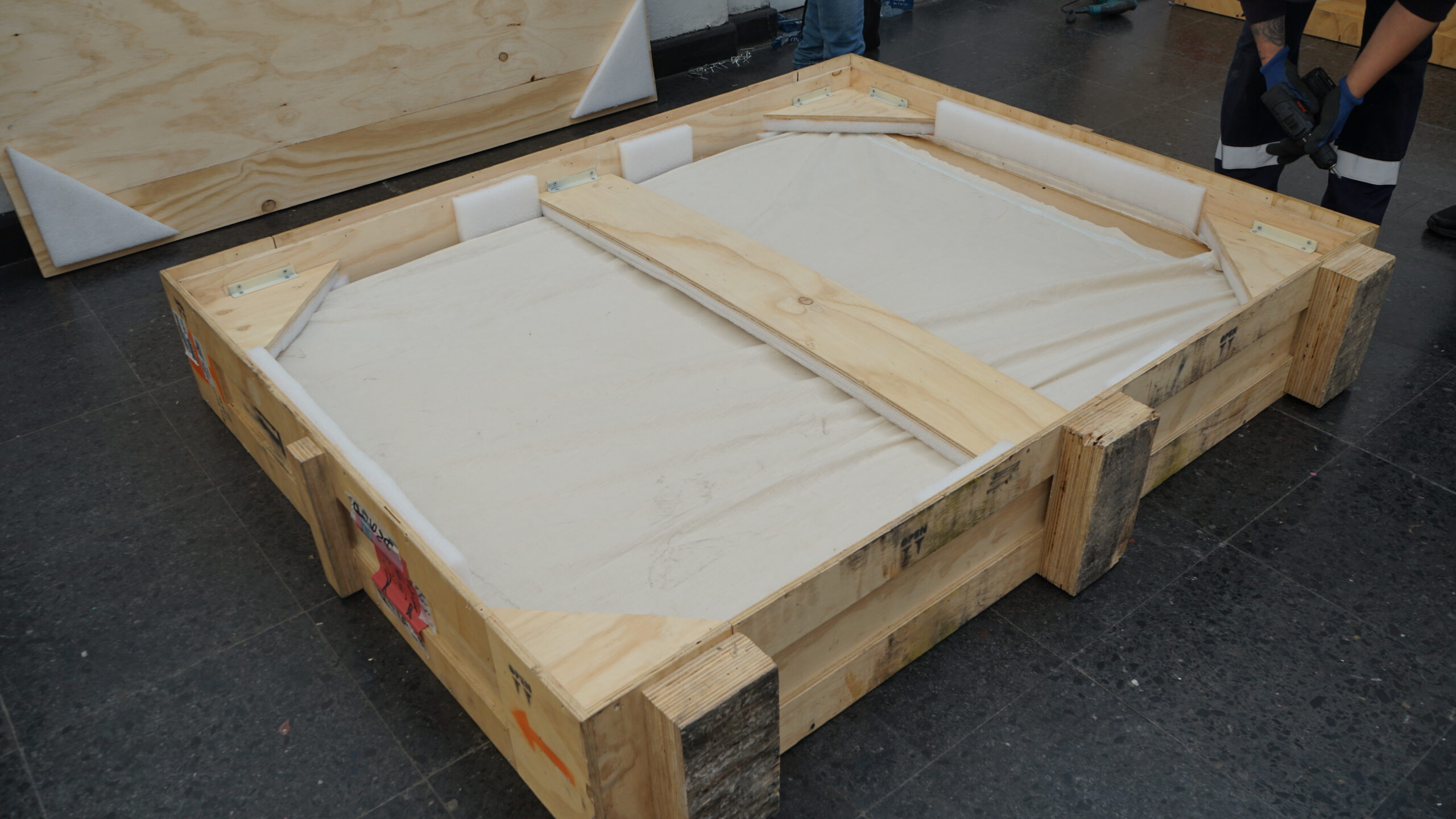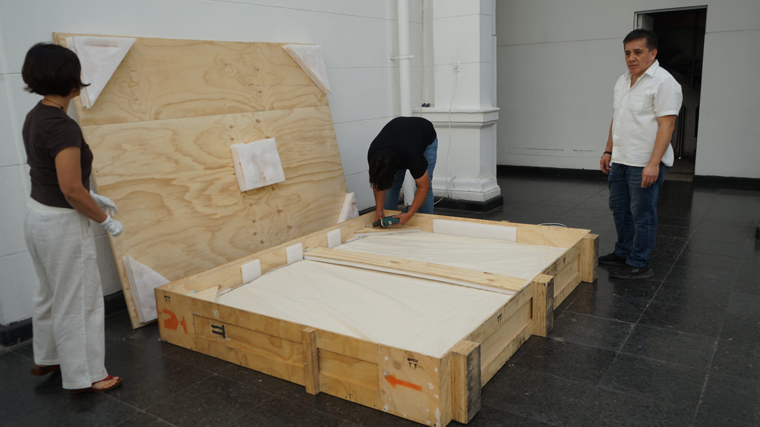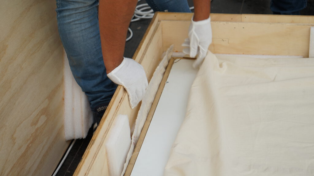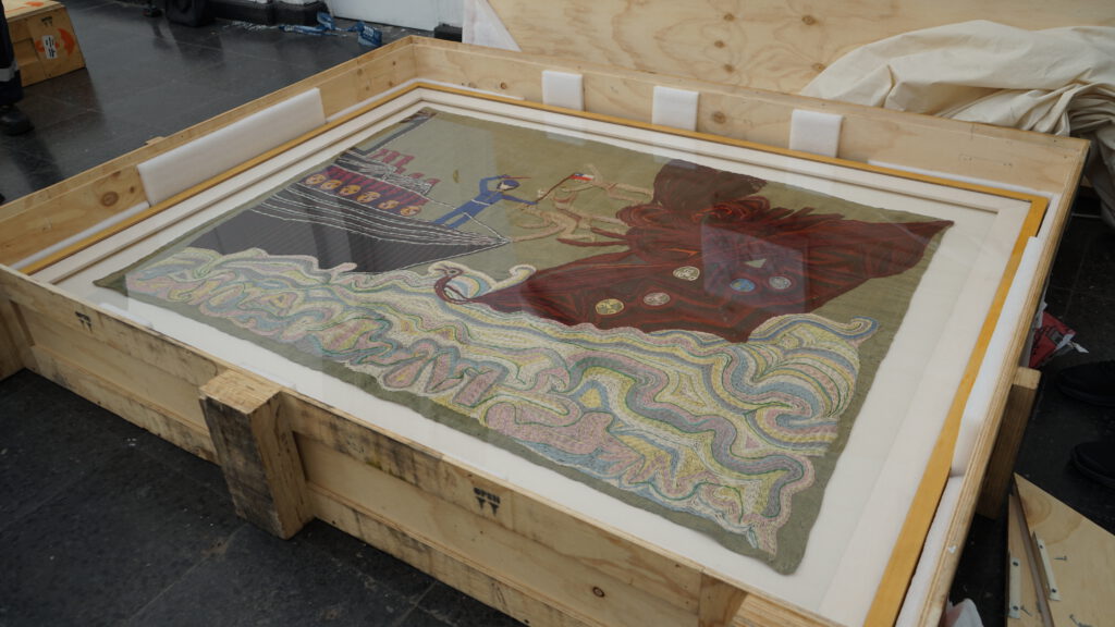 Las arpilleras, que son específicamente «Combate Naval 1», «El Circo» y «El árbol de la vida», fueron trasladadas desde el depósito de alta seguridad del Museo de Arte Contemporáneo (MAC) Quinta Normal hasta el Pabellón Central Giardini de Venecia, Italia, en cajas reforzadas, diseñadas para su envío, junto a instalaciones de acrílico y marcos especiales para la ocasión.
