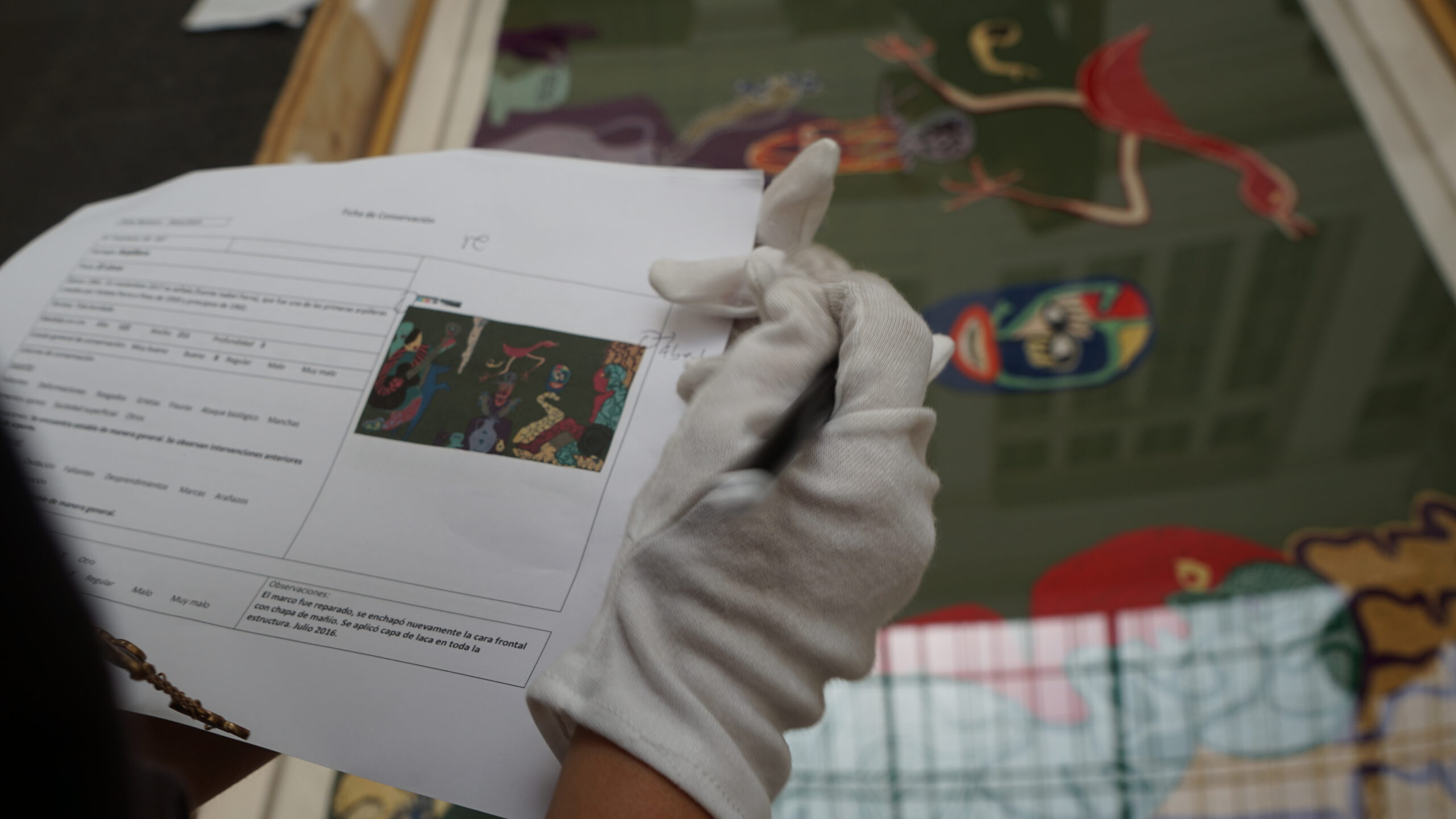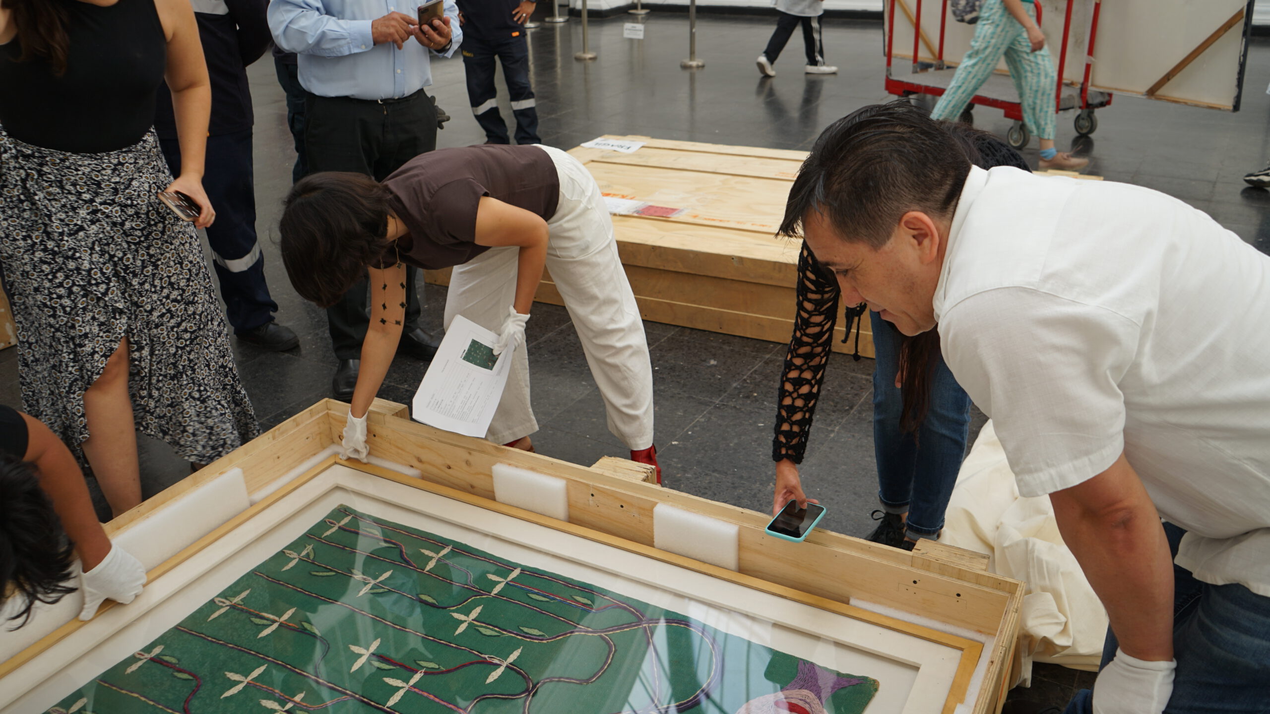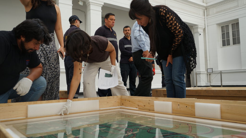 En virtud de lo anterior, la Jefa de Colecciones y Patrimonio del museo comentó que «este protocolo, que es algo común de las instituciones museales, tiene por objetivo ver el estado de conservación de las arpilleras luego de su viaje, especialmente considerando su calidad de Monumento Histórico de Chile». Agregó, además, que es muy emocionante estar cerca de la obra de Violeta Parra, especialmente estas tres arpilleras que son fundamentales en su trabajo textil. Son obras hermosas que pudimos ver nuevamente y es una alegría que estén de vuelta en Chile».