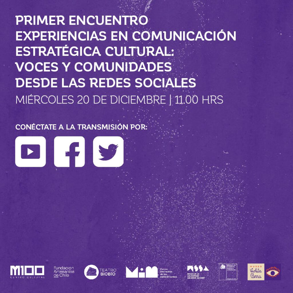 - Con un foco especial en las redes sociales y el trabajo junto a comunidades digitales, el Museo Violeta Parra les invita a ser parte del Primer Encuentro de Experiencias en Comunicación Estratégica cultural: voces y comunidades desde las redes sociales, que se realizará el miércoles 20 de diciembre, a las 11.00 hrs, en formato online.