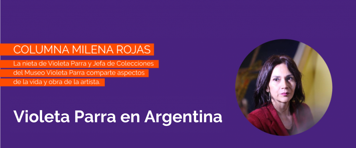 El año 1961, Violeta y su madre viajan a Argentina para buscar al tío Lalo (Eduardo Parra) quien al enviudar decide irse junto a sus hijos a la Pampa Argentina a buscar trabajo. Lamentablemente su plan no funciona y regresa a Chile junto a sus dos hijos y su madre. Violeta se queda por un corto período en Buenos Aires para luego regresar a la Pampa Argentina a la ciudad de General Picó. Nace una amistad con Don Joaquín Blaya.  Se instala unos meses en la casa del Gobernador y esposa. En esta casa realiza cursos de folklore, cerámica, pintura y bordado. Se presenta en la Peña “El Alero”. No se conoce la verdadera razón de su amistad con el Gobernador ni el por qué  se instala a vivir con ellos por un tiempo. Sin embargo su estadía en ese lugar fue fructífera. Su amistad se ve reflejada en las cartas que Violeta le escribe cuando viaja por el mundo. En febrero de 1962, en una de sus cartas le cuenta lo difícil que fue despedirse de ellos luego de su partida a Buenos Aires y estadía en el hotel Phoenix ubicado en la esquina de avenida Córdoba con calle San Martín. No logra acostumbrarse a este cambio tan brusco de ciudad. Debe organizarse para trabajar ahí, exhibiendo su obra plástica y cantando. En Buenos Aires expone sus pinturas y arpilleras. Realiza un par de recitales en el teatro I.F.T. y participa en algunos programas de radio y televisión argentina.  También cuenta que le fue muy difícil obtener su permiso de trabajo razón por la cual tuvo que hacer muchos trámites y esperar varias semanas para que todo estuviera en regla. Es muy importante recalcar que la artista graba un Long Play de canciones originales como “Arriba quemando el sol”, “Arauco tiene una pena”, “Según el favor del viento”, entre otras. Y, algunas recopilaciones folklóricas como “Los santos borrachos” y “El romero no lo quiero”. Posteriormente graba un disco con estas mismas canciones en Francia el año 1963 cuyo título es “Canciones reencontradas en París”. Este es uno de los discos más importantes de su carrera que sin lugar a duda es la huella que deja de su paso por Argentina.