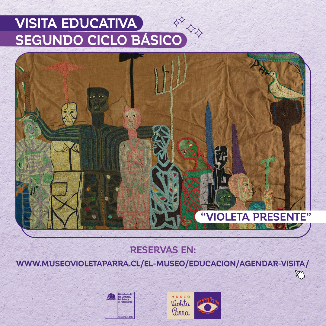 Las actividades de mediación «Tengo de hacer un retrato», enfocada en el primer ciclo, el cual comprende de 1ero a 4to básico, y «Violeta presente», que apunta a segundo ciclo, de 5to a 8vo básico, invitan a conocer de forma participativa la Sala Museo Violeta Parra, donde a través de un recorrido mediado podrán acercarse a la vida y obra de la artista.