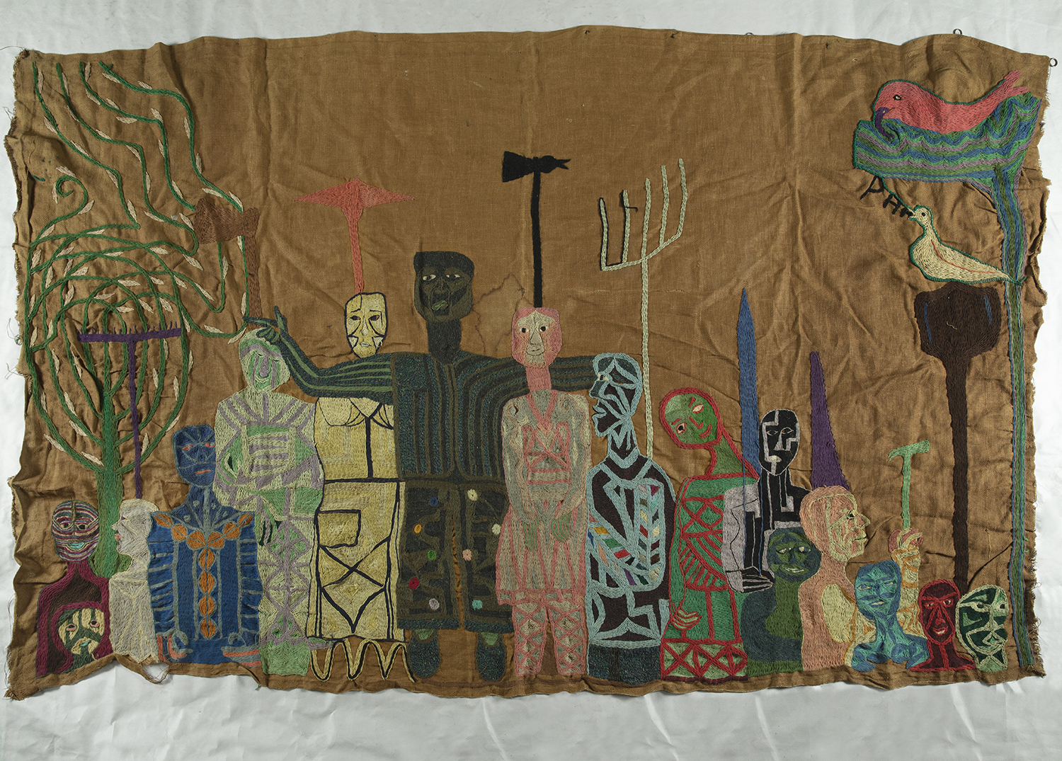 Tela de arpillera bordada con lana